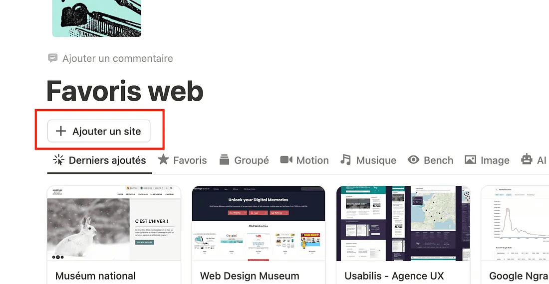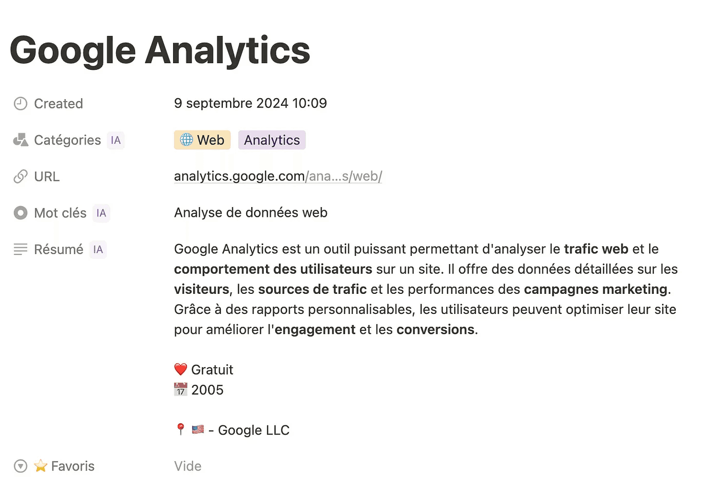 Pour créer d’un seul clic une page favoris avec le titre, l’url et une capture d’écran, utilise l'extension chrome “Save to Notion”.