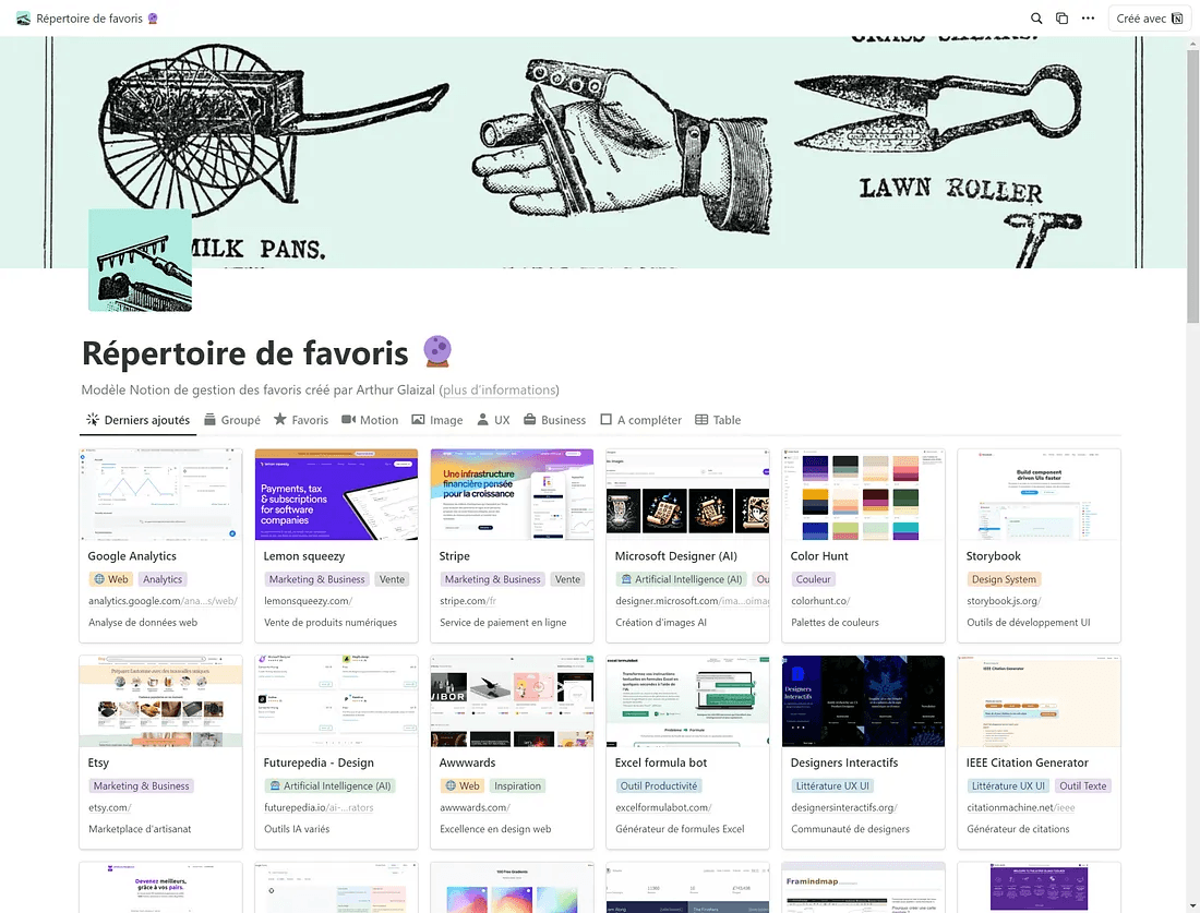Par défaut, la page est remplie avec mes favoris ⭐️ pour le design et plus.