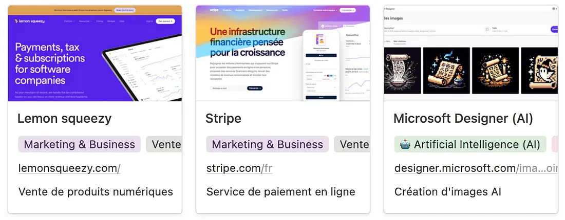 J’utilisais les favoris du navigateur, mais c’était une galère 😬 : dur de trouver, pas de recherche, et un labyrinthe à naviguer pour arriver au bon lien (hello Accot-Zhai Steering Law).